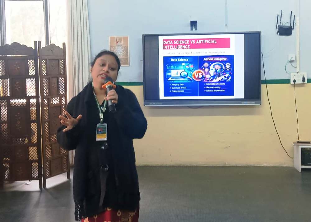 Students were introduced to the basic concepts, scope, and real-life applications of both subjects. Data Science was explained as working with data for analysis and informed decision-making, while Artificial Intelligence was presented as enabling machines to simulate human intelligence.