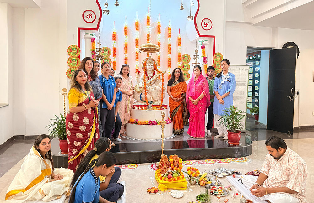 "Samsara The World Academy celebrated the auspicious occasion of Diwali with great devotion and joy on October 18, 2025. The school conducted a traditional Diwali puja to seek the blessings of the Almighty for prosperity, peace, and happiness & growth of school. The ceremony was attended by Capt. Praveen Roy, the principal, all the coordinators, admin staff, and teachers, along with the enthusiastic participation of the school students' council members. The atmosphere was filled with positivity and festive spirit & spirituality with chanting of mantras when everyone came together to invoke divine blessings and celebrate the festival of lights with warmth and togetherness."