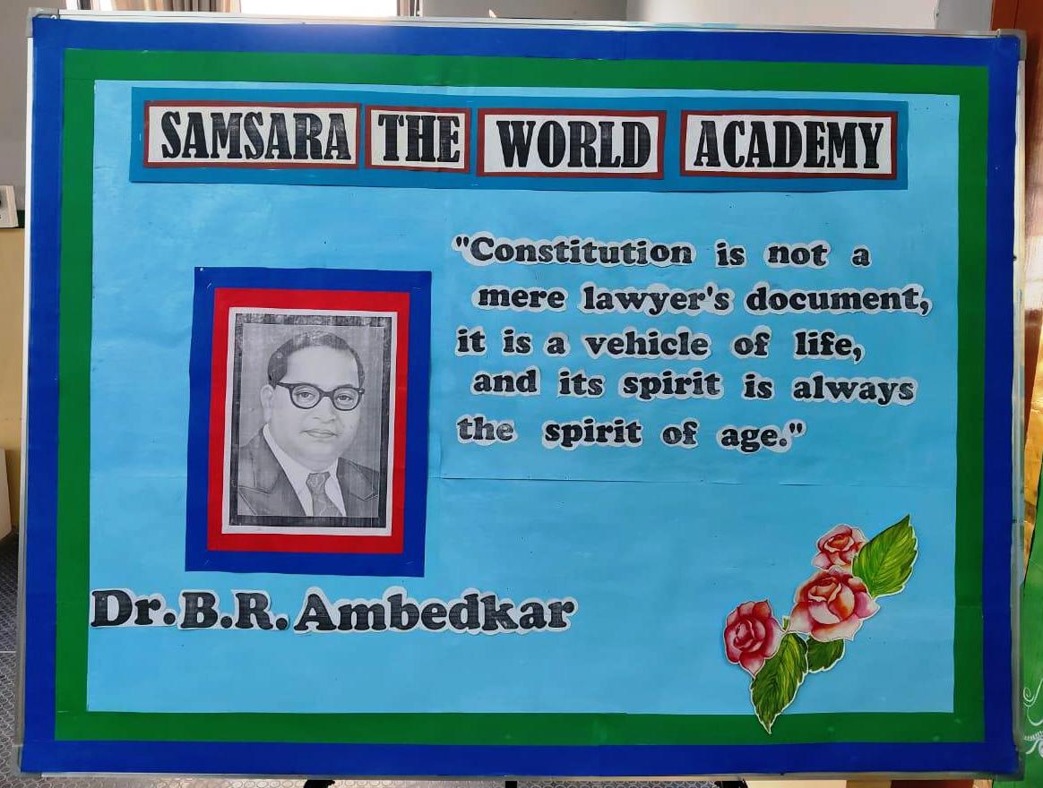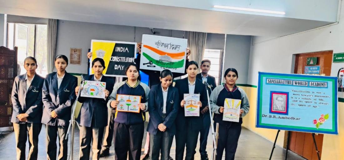 Samsara The World Academy observed Constitution Day on 26 November 2025 with a special assembly conducted by students of Class XI. The program began with a morning prayer and the thought for the day, setting a reflective and meaningful tone for the occasion. Students delivered an insightful speech on the significance of the Indian Constitution and the visionary role of Dr. B. R. Ambedkar, highlighting his contributions as the chief architect of the Constitution.