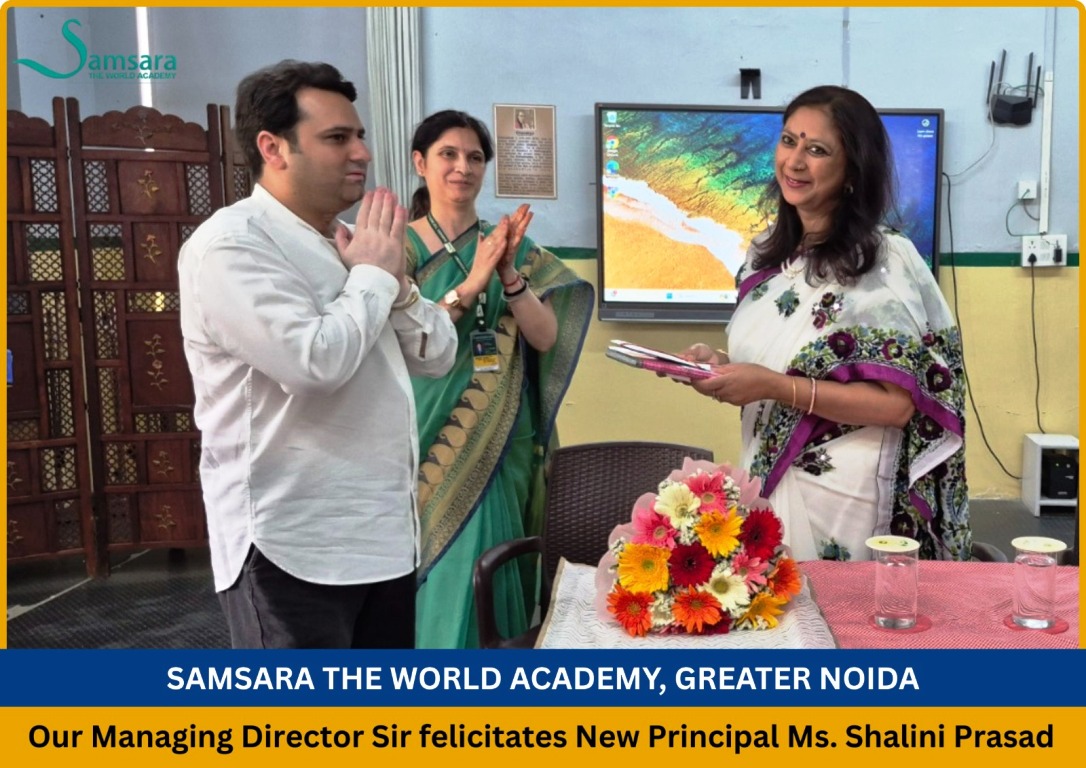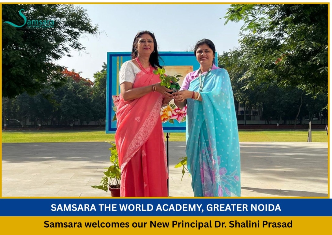 A special morning assembly was organised at Samsara - The World Academy, to welcome Principal, Dr. Shalini Prasad ma'am, and Vice Principal, Ms. Jyoti Batra ma'am. The assembly began with the morning prayer, creating a calm and positive atmosphere.