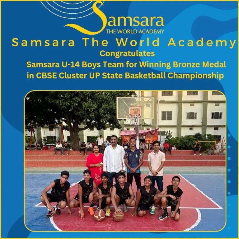 Samsara The World Academy is thrilled to announce that the school’s under-14 boys basketball team has secured the Bronze Medal at the recently held CBSE Cluster State Basketball Championship held at Baruat, Bagapat .