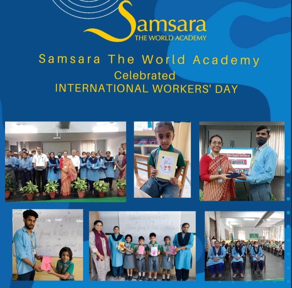 Samsara-The World Academy celebrated International Workers' Day to acknowledge the efforts of the sub staff ( Didies & Bhaiyas) of the school on 1st May 2023. In the morning assembly, students expressed their gratitude by reciting a beautiful poem and speech, emphasizing the importance of dignity of labour. As a mark of respect, handmade cards were presented to thank them by our Tiny-tots of foundational wing. A beautiful board was prepared by the students to make them feel special. School Principal Captain Praveen Roy addressed the sub-staff. She added that we all must learn to respect and appreciate the hard work and dedication of didies & Bhaiyas. At the end of the celebration, uniforms were distributed and refreshments were served. Our march in our quest of learning and "To Greater Heights" continues.