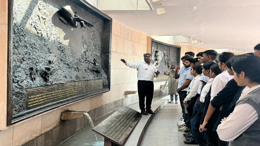 Students of Classes X and XII visited the National War Memorial, New Delhi, on 6th November, 2025 for a memorable educational excursion. The visit aimed to instill patriotism and respect for the brave soldiers who sacrificed their lives for the nation. Students observed the Amar Chakra, Veer Chakra, and Tyag Chakra galleries with great reverence. Teachers explained the significance of the memorial. The trip was both inspiring and informative, leaving everyone with deep pride and gratitude for the armed forces.