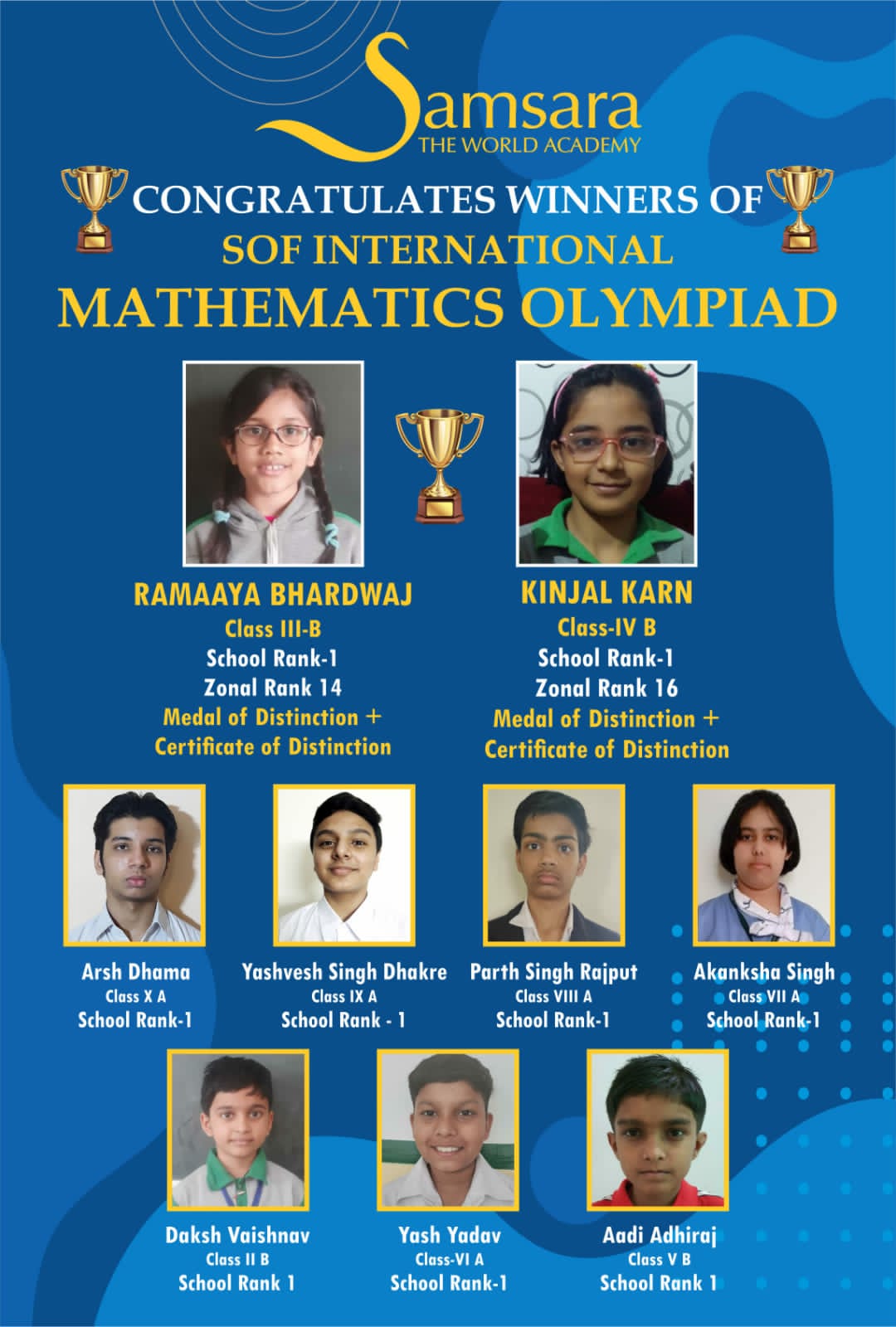 Samsara The World Academy feels over the moon to share the results of the Mathematics Olympiad declared by SOF.