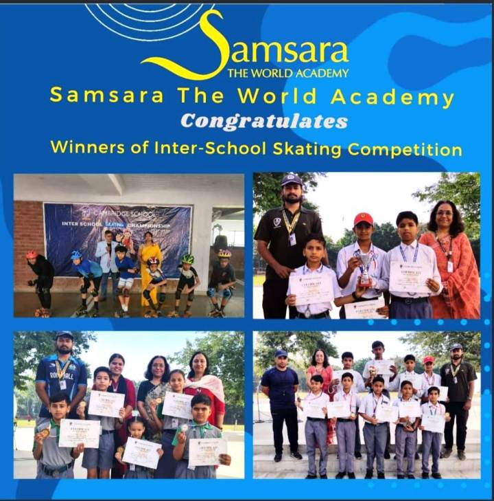 Samsara- The World Academy, proudly announces that Samsarians brought laurels by getting top positions in various categories in Inter-school 'Roller Skating Competition 2023-24' on 3rd, 4th & 8th May 2023 at MS Subbulakshmi Memorial Auditorium, organised by Cambridge School, Greater Noida.