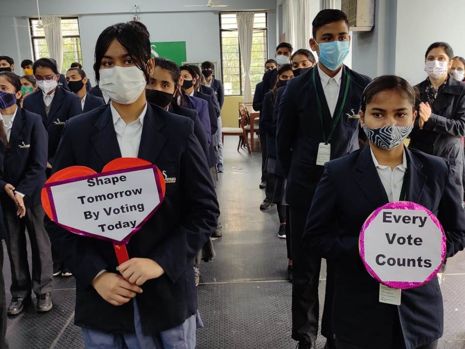 To encourage young students to actively participate in the election process and contribute towards nation-building, Samsara-The World Academy conducted an ‘Election Awareness Drive’ through a special assembly on Wednesday, 9 February 2022.