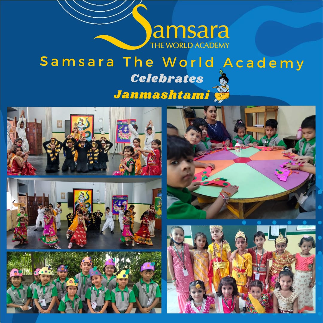 Samsara- The World Academy conducted a special morning assembly on Wednesday, 6th September 23 to celebrate Janmashtami, the birth of Lord Krishna. The students of classes Nur. to UKG created beautiful "Mukuts" decorated with a feather of peacock to hone their fine motor skills.