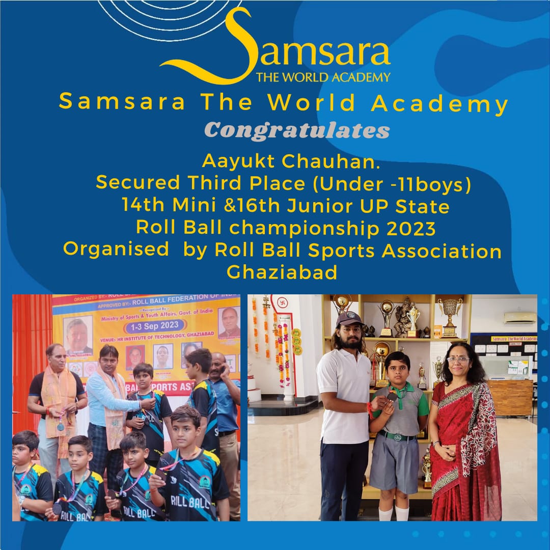 It is a source of pride for Samsara The World Academy that our young champions have won medals and winning positions in the 14th Mini (under -11) and 16th Junior (under -17) Roll Ball Championship 2023, held at HR Institute of Technology, Hrit Campus from 1st to 3rd September 2023, organised by Roll Ball Sports Association Ghaziabad and Roll Ball Sports Association, Uttar Pradesh, recognised by the Ministry of Youth and Sports Affairs, Roll Ball Federation of India.