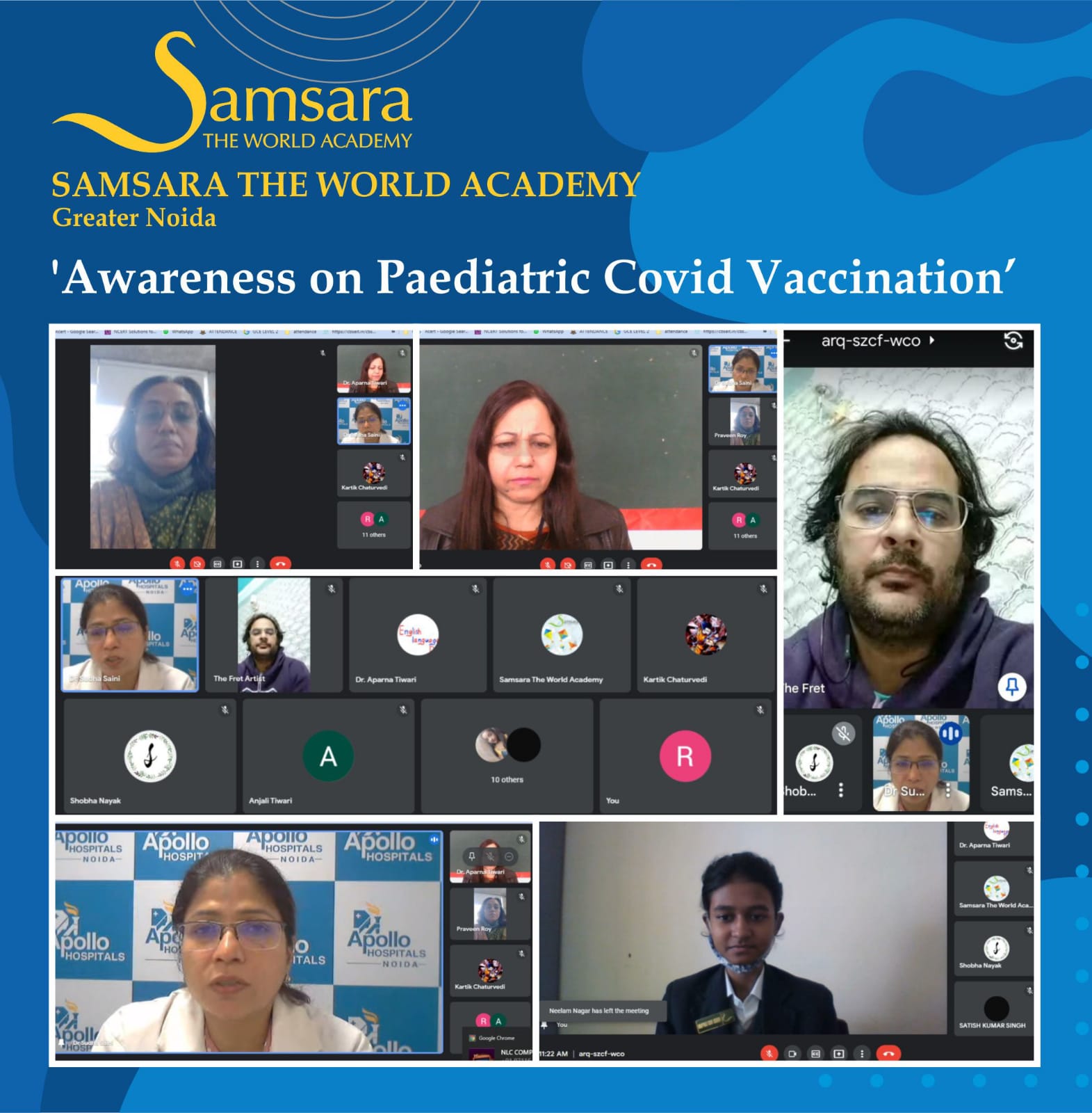 To make parents aware of the vaccination process of children and to create awareness about the Paediatric Covid Vaccination Samsara-The World Academy organized a webinar on the topic “Paediatric Covid Vaccination” on 8th, December 2021. Eminent speaker, Dr Sudha Saini, Senior Paediatrician, Apollo Hospital, Noida explained the importance of Paediatric Covid Vaccination.