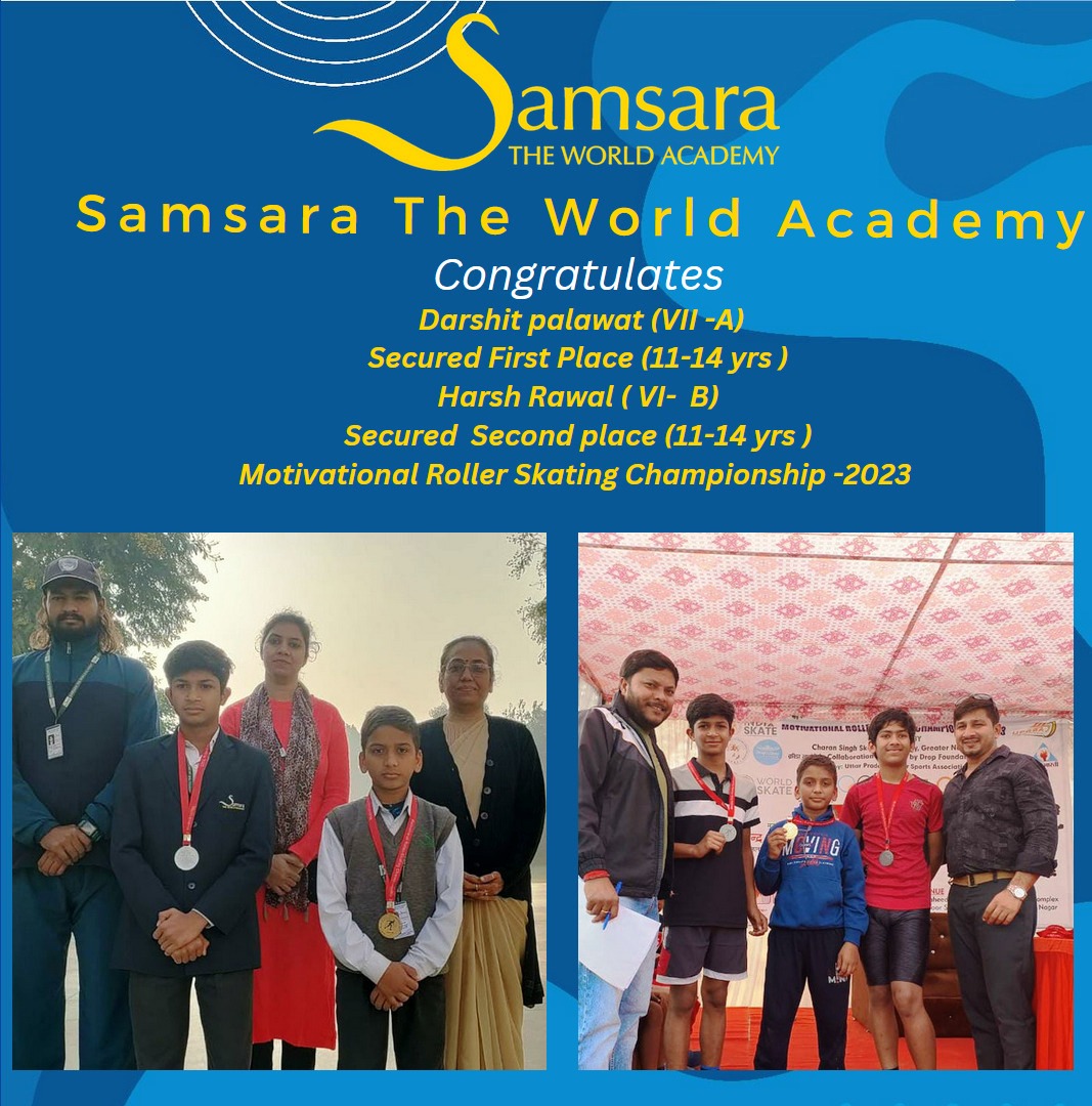 The recently concluded “Motivational Roller-Skating Championship 2023”, held at Shaheed Vijay Pathik Singh Stadium, Gr. Noida organised by Uttar Pradesh Roller Sports Association on 03-12-23. Our students Darshit Palawat of class VII bagged first position and Harsh Rawal of class VI secured second position under the age group 11-14 years.