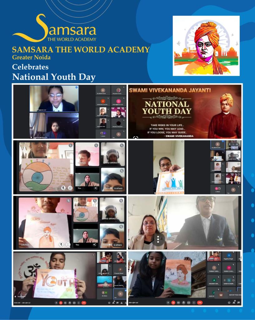 Samsara The World Academy celebrated the National Youth Day on 12th January 2023 with the primary aim of sensitizing the students about the philosophies, principles and ideas of Swami Vivekanada. Teachers shared inspiring stories to motivate the students to be good citizens of India and contribute themselves to the development of the country. Students of classes VI to VIII participated with great zeal and enthusiasm and shared the inspiring stories of Swami Vivekananda’s life and also made posters to pay tribute to their leader.