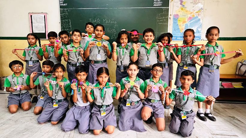 To further engage students creatively, a Rakhi Making Activity was organized across various grades. Students used eco-friendly materials like threads, beads, paper, and recycled items to craft beautiful rakhis. Students develop a deeper appreciation for Indian traditions and festivals through participation in related activities and learnt to express the value of love, care and responsibility in sibling relationships.
