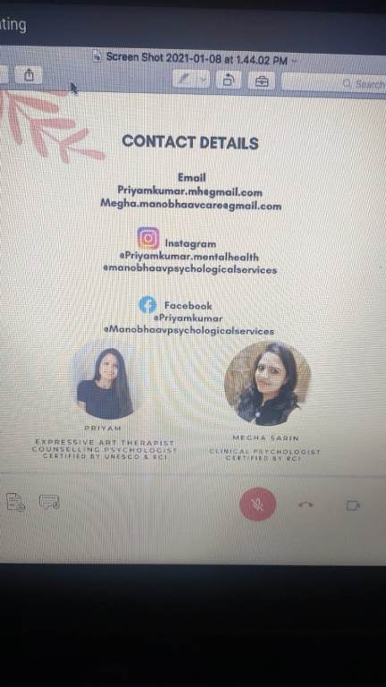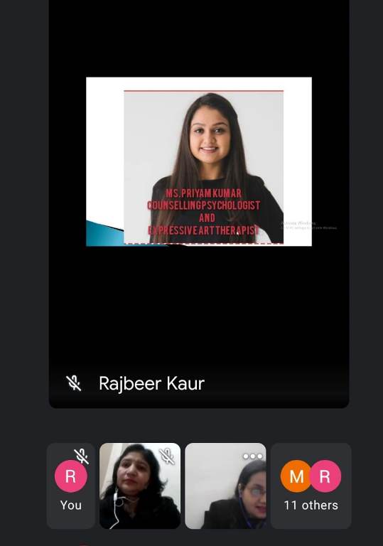 Our resource persons Ms. Megha Sarin (Clinical Psychologist) and Ms. Priyam Kumar (Counsellor Psychologist & Expressive Art Therapist) who are practicing in Delhi NCR, took the session.