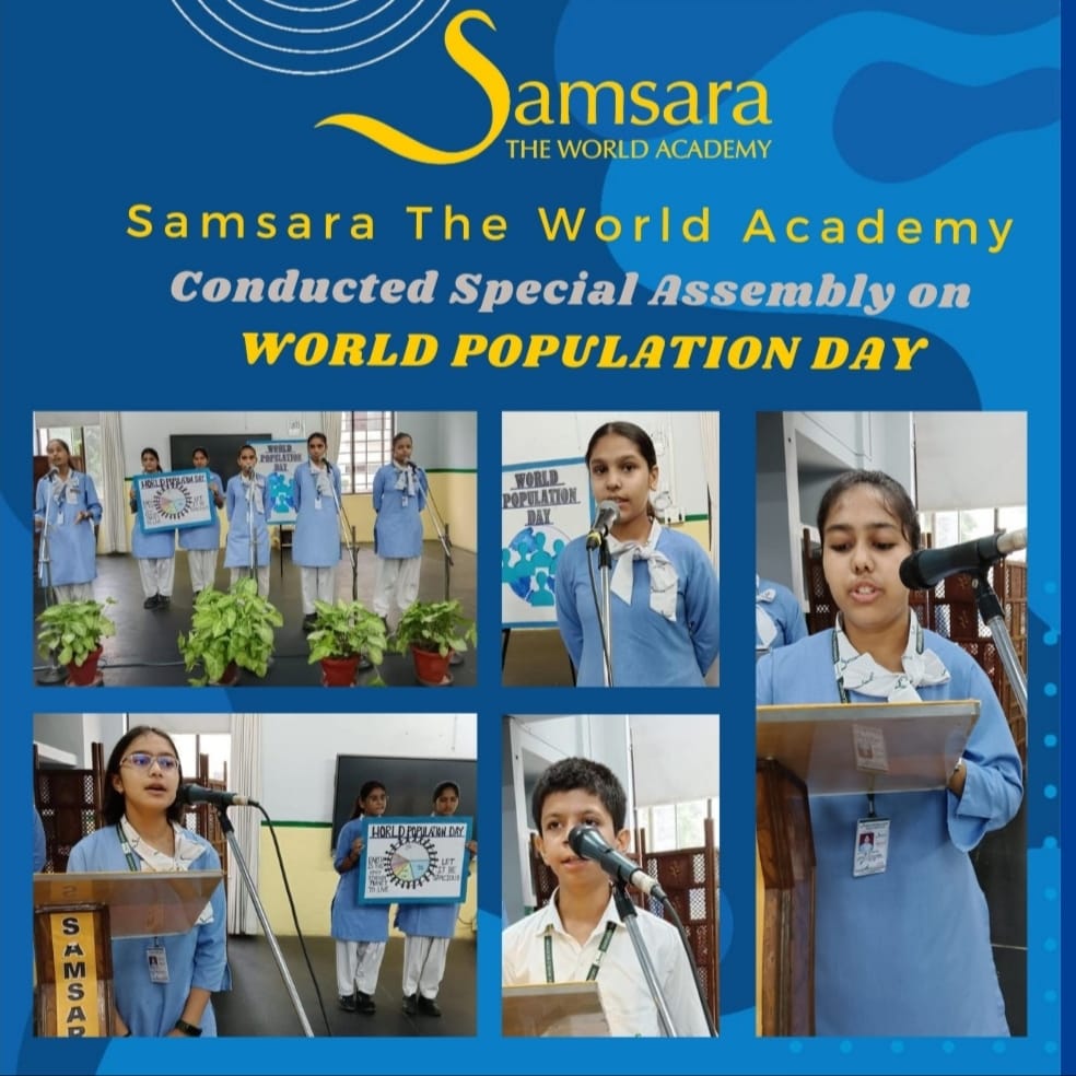 Samsara-The World Academy celebrated The World Population Day on 11th July 2023 by organising a special assembly. Students of class IX & X grades presented informative speech & debate that emphasised on history, significance and awareness about the world population. Students participated with great enthusiasm and energy.