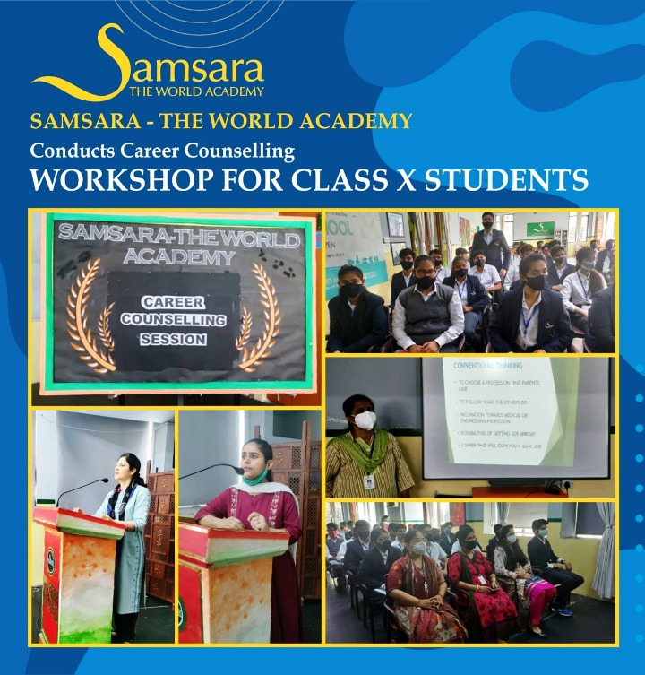 It is then imperative that these two pillars meet and understand what’s best for their wards. In pursuit of the same, a Career Counselling Workshop was organized at Samsara -The World School, on 15 March 2022 for the students of Class X to assist them in the choice of subjects to be taken in Class XI.