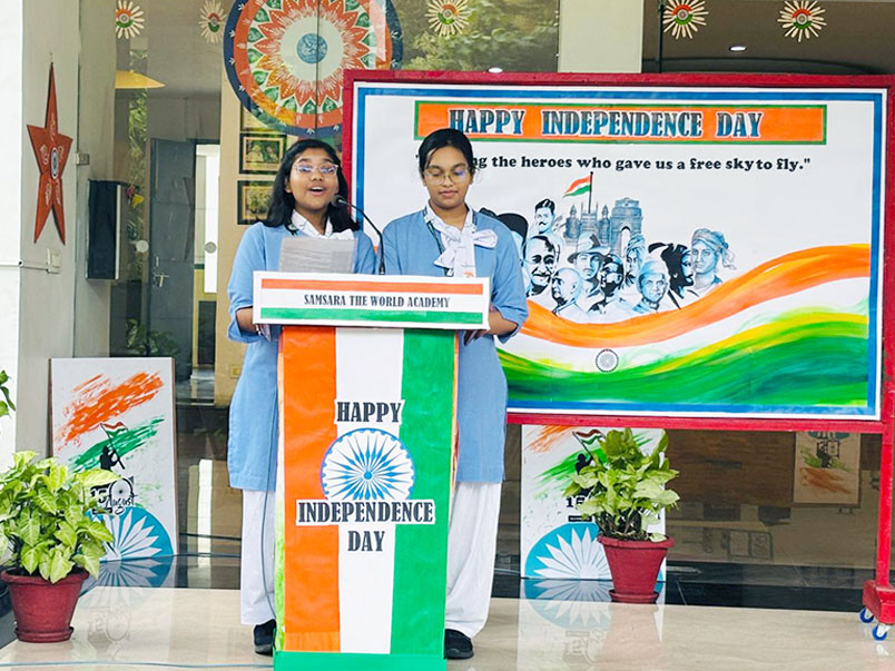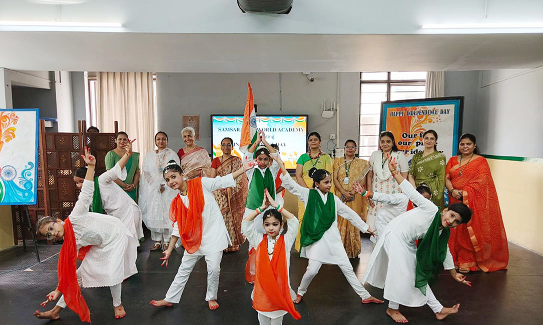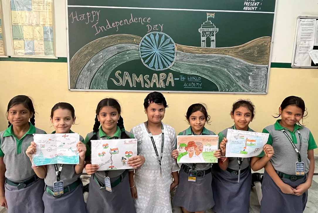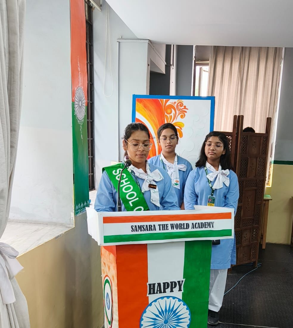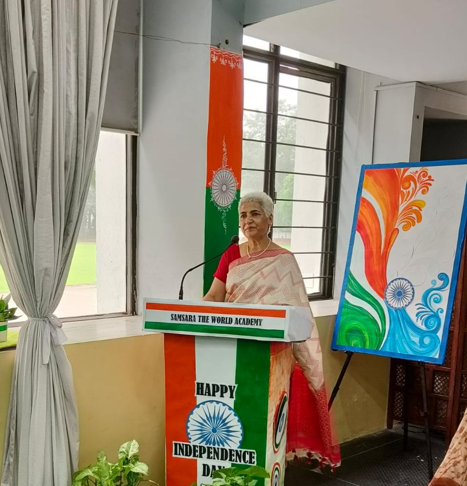Samsara The World Academy celebrated Independence Day on 15th August 2025 with great patriotism and enthusiasm. The program began with the flag hoisting, followed by the national anthem. Students presented cultural performances, patriotic songs, and speeches highlighting India's freedom struggle. Chief Guest Ms. Sudesh Dangi motivated the students to become responsible citizens. School Principal congratulated everyone on the occasion of Independence Day encouraging everyone to uphold the nation's values. The celebration concluded with a vote of thanks.