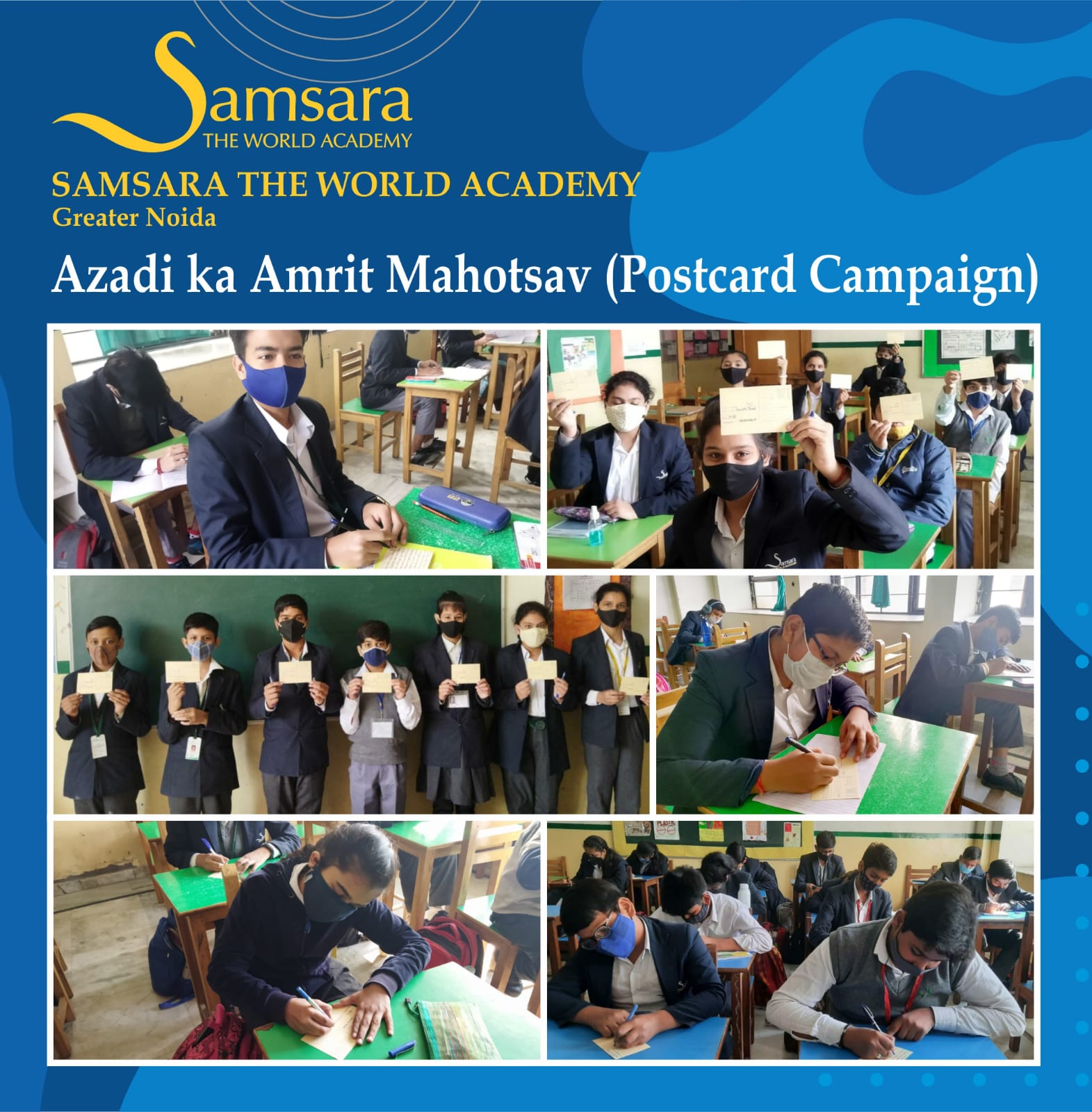 To take part in this campaign, Samsara-The World Academy organized the postcard activity on 11th, December 2021. The students of Classes IV to XII enthusiastically participated in this activity. All the students conveyed their ideas to our Honourable Prime Minister, Mr. Narendra Modi on the topic ‘My Vision For India in 2047’ or ‘Unsung Heroes of Freedom Struggle’ through a postcard.