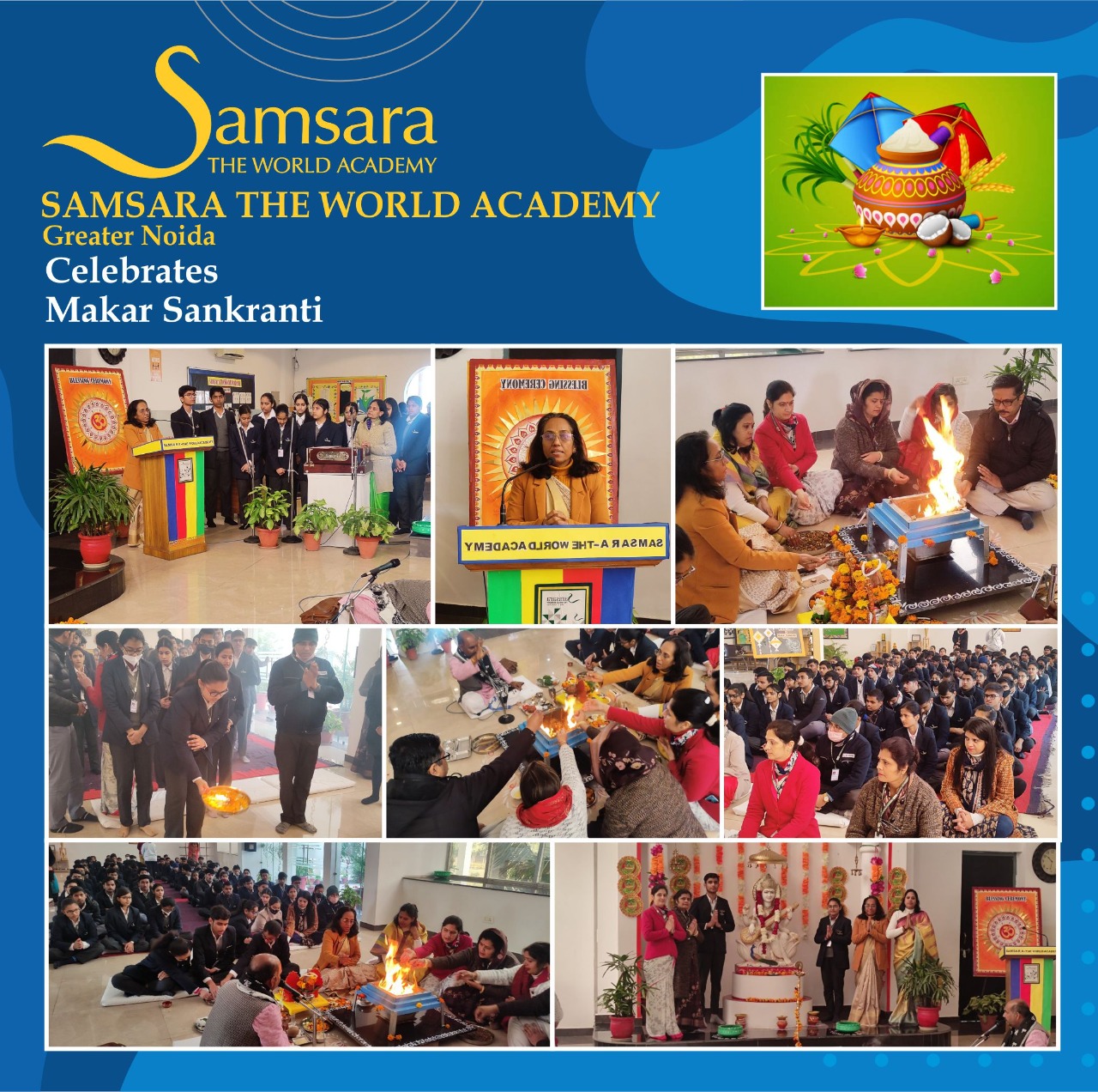 The Havan ceremony was conducted at Samsara -The World Academy, on 14th January 2023 to seek grace and the choicest blessings of God for the students appearing for classes X & XII board examinations. The Havan was performed religiously under divine fervor & spirituality to invoke blessings of the Almighty for students' brilliant performance. It is believed that the havans cleanse the mind and neutralize pre-exam nervousness, which in turn raises performance.