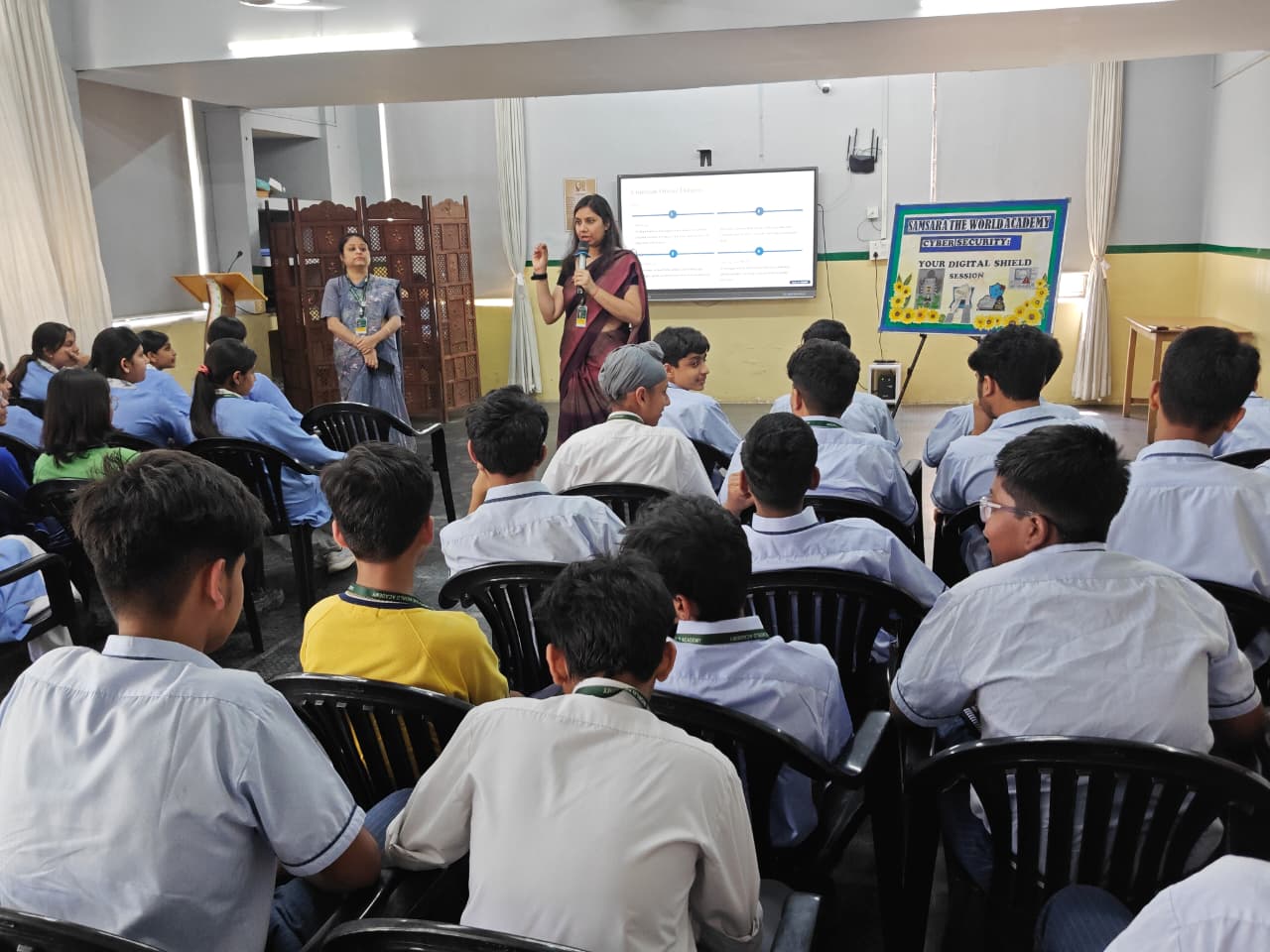 A Cyber Security Awareness session was conducted for students of Classes IX and X at Samsara The World Academy to promote safe and responsible digital practices.