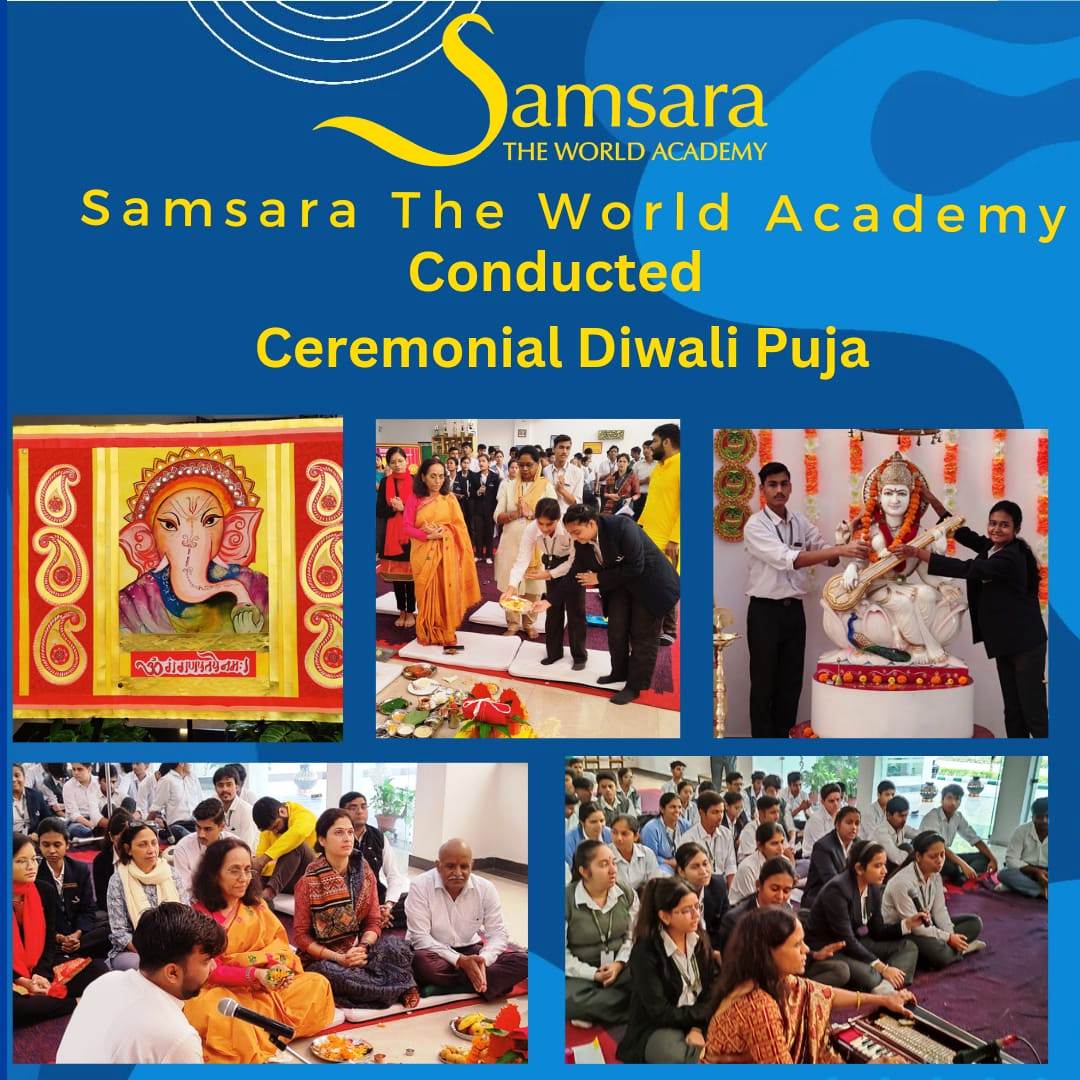 Samsara-The World Academy organised Diwali Puja on 10th November, 2023. Puja exemplified the spirit of festivity and cultural reverence. Commencing with the ceremonial lighting of diyas and sacred chants, students, teachers, and staff actively participated, fostering a sense of unity and devotion.