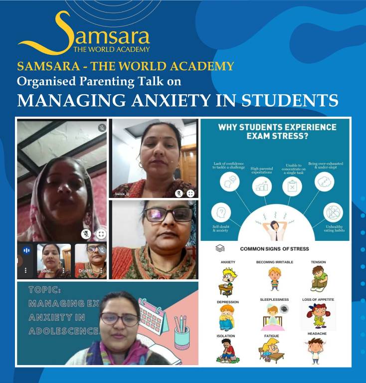 To address this issue to help students and their parents to cope with it, Samsara-The World Academy organized an online counselling session on “Managing Exam Anxiety in children” for the parents of IX to XII graders on 11th February 2022.
