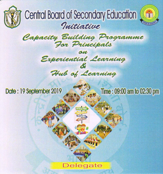 Our Principal, Captain Praveen Roy and CBSE Coordinator Mr. Sandeep Saroha attended a Capacity Building Program for Principals on Experiential learning and Hub of Learning held at DPS , Bulandshehar on 19th Sept 2019. The workshop highlighted the need to bring the joy of learning in the classrooms by using experiential learning methodologies.