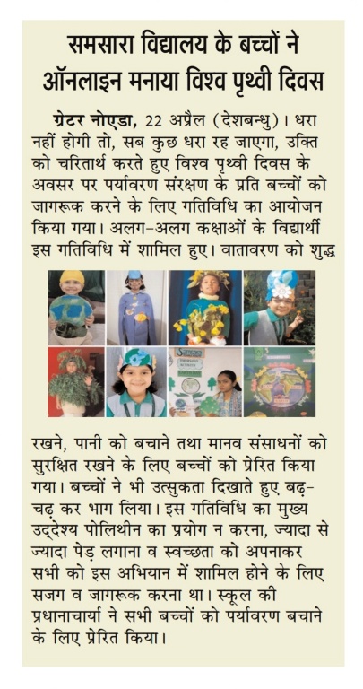 In sync with the above ideology, Samsara-The World Academy organised a virtual celebration of Earth Day for primary students on 22 April, 2021.