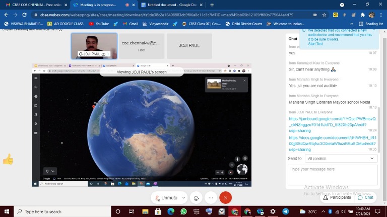 Thus ,the resource person guided the participants by practically showing & using different digital tools like google jamboard, testmoz, mentimeter, google earth etc.