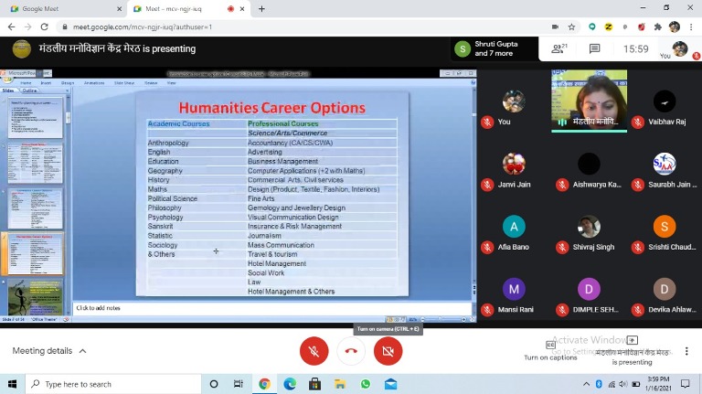 With the aim to help our senior students in understanding their hidden talent and to make a career decision, an interactive online 'Career Counselling Session’ was organised for the classes IX to XII by Regional Psychological Centre, Meerut on 16th Jan, 2020.