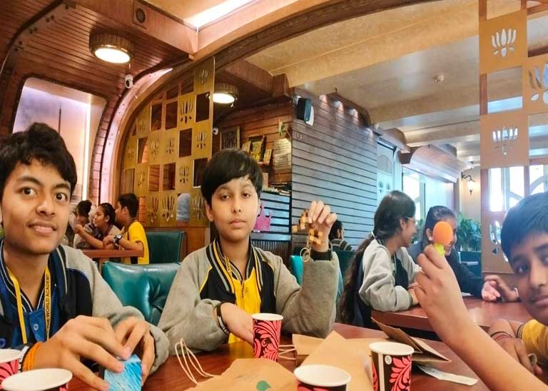 After an exciting tour of the museum, students and teachers proceeded to Dasaprakash, a well-known South Indian restaurant. They were served a delicious meal. The students relished the traditional flavours and enjoyed their time together in a relaxed environment.