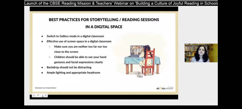 Our English facilitators Ms Reema Sharma, Ms Aparna Tiwari, Ms Shipra Garg and Ms Alisha Sinha attended a webinar on 20th, September 2021 on the topic 'Building a Culture of Joyful Reading in School' - a launch of the CBSE Reading Mission 2021-2023. It is a two-year initiative to promote Reading Literacy among young learners. It was conducted by CBSE, in association with Pratham Book Story Weaver and Central Square Foundation.