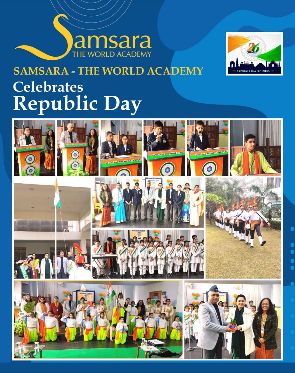 The students of Samsara The World Academy celebrated the day with great éclat. Students participated in a plethora of activities to show their love for the nation. Students were dressed up in traditional costumes and sang patriotic songs. They also participated in ' Flag Making' and 'Essay Writing' activities and showed up the spirit of patriotism.