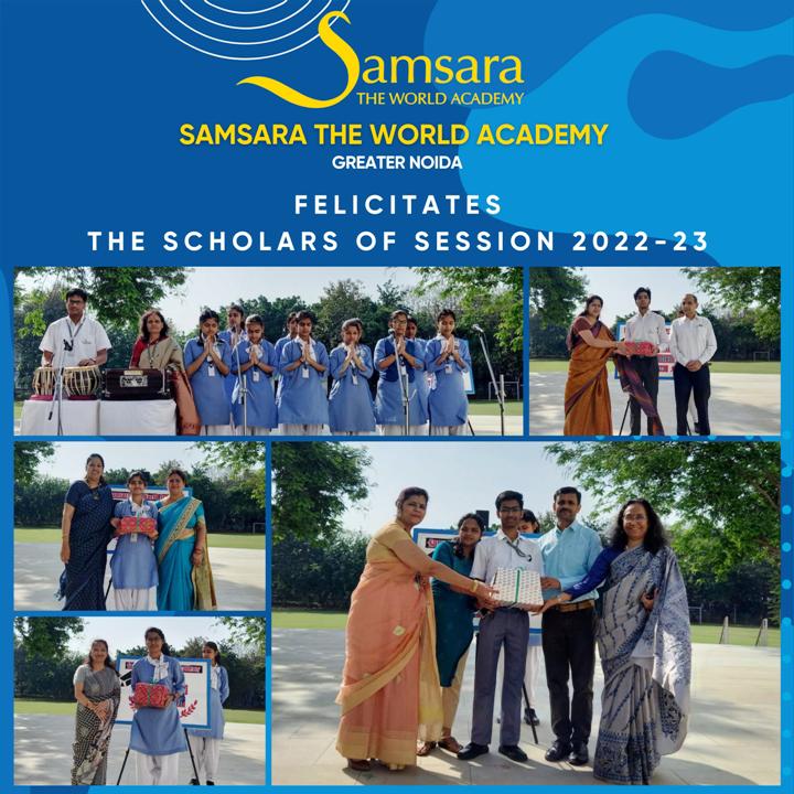 Today, on Saturday 25 March 2023, our School, Samsara - The World Academy conducted a "Scholars' Day ", where the high achievers of IX & XI graders of session 2022-23 were felicitated with a token of appreciation amidst the proud parents & their classmates in the morning assembly. Principal, Capt. Praveen Roy, while appreciating the achievers, exhorted them to continue to work hard and remain dedicated. Principal also took this opportunity to motivate all Teachers and Students to remain steadfast in their march "To Greater Heights".