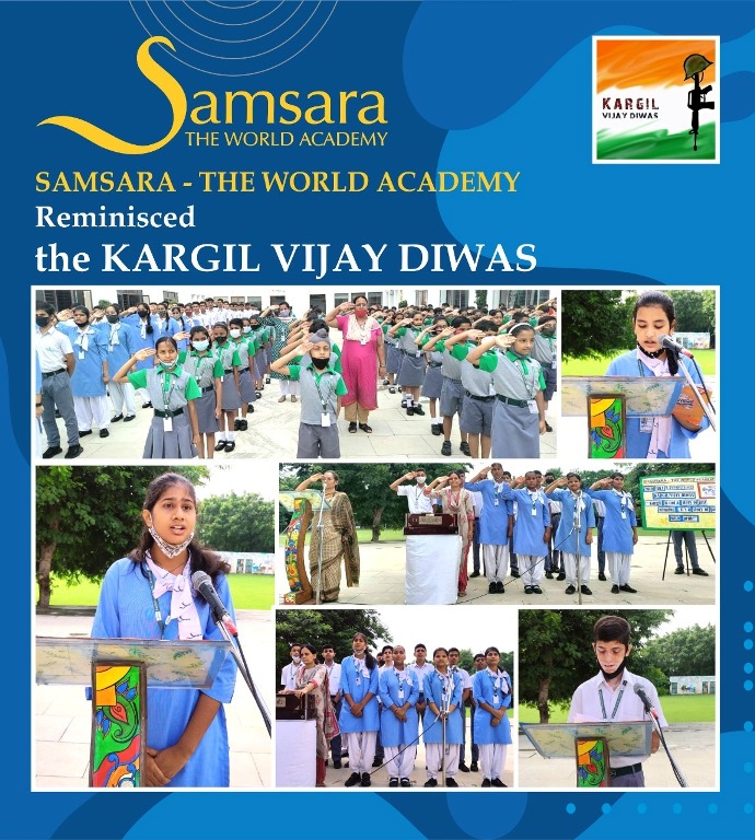 Samsara-The World Academy conducted a special assembly on 25th July 2022 to pay their heartfelt homage to the martyrs of the Indian Army, BSF and other troops who sacrificed their lives and won the war at Kargil.