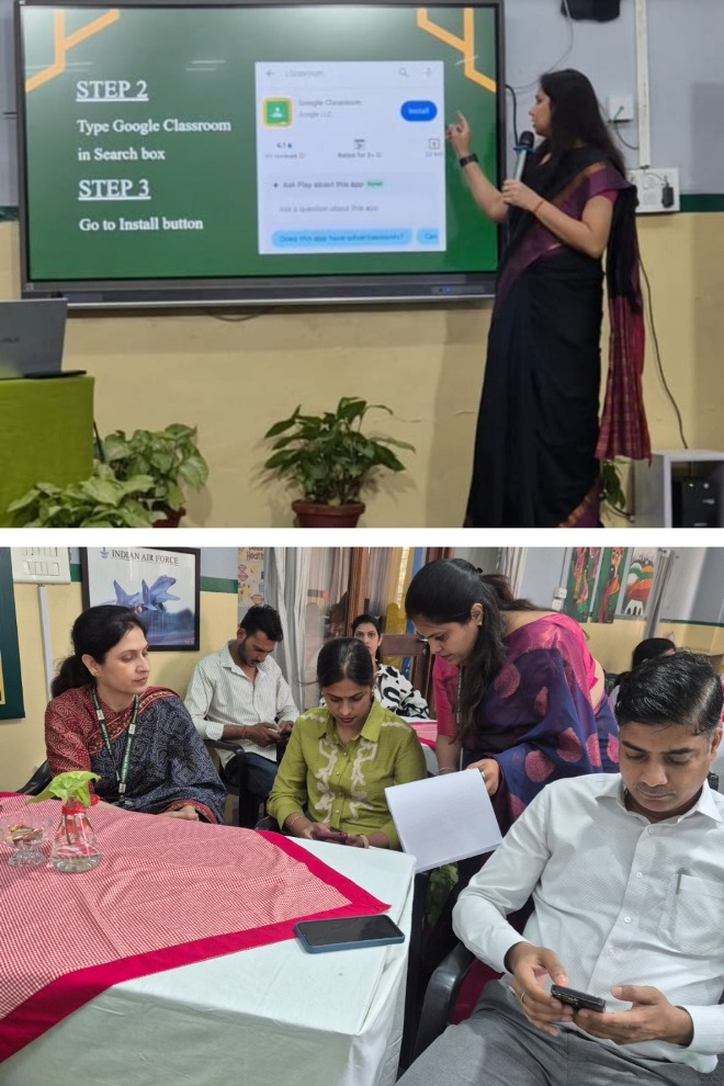 Ms. Shipra Garg, Middle Wing Coordinator, conducted an insightful session on Gentle Parenting. Our Facilitators Ms. Misha Gurjar (TGT-English) presented a comprehensive overview of the school's founders, heritage, achievements, NEP, NCF, and assessment pattern, while Ms. Seema Chalotra (PGT–Computer Science) demonstrated the use of Google Classroom and the Campus Care app, guiding parents on effective utilisation of these platforms.