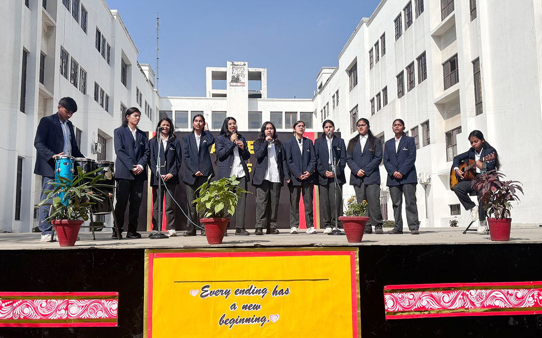 Addressing the students, Ms. Jyoti Batra Ma'am, Officiating Principal, shared her inspiring words and extended her best wishes for the bright future of the outgoing batch. The event concluded on an emotional note as students fondly cherished their journey and memories.