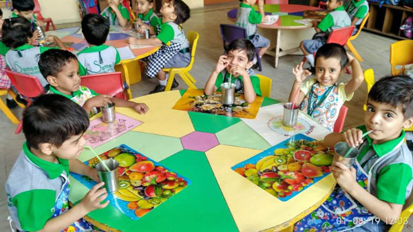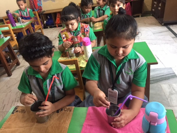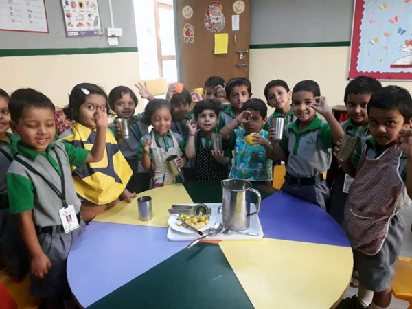 The tiny tots from classes MB to II tried to beat the heat in this sun drenched summer by preparing refreshing ‘Lemonade’ on 1st August’19 at Samsara- The World Academy.
