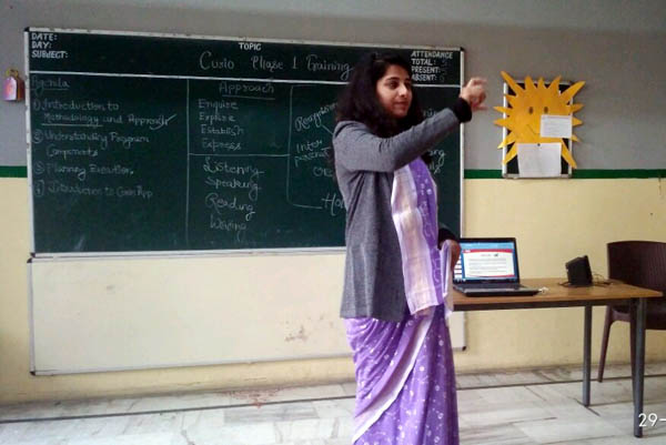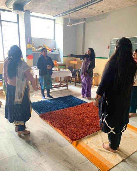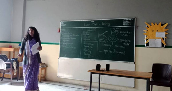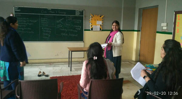 A training session on Curio Curriculum was organised for Pre-primary teachers at Samsara school on 29 Feb, 2020 by the resource person Ms Monica Pranveer. During the session the teachers were introduced to Curio curriculum with various activities and classroom strategies to enhance the teaching-learning process. It is a comprehensive theme-based kindergarten curriculum with emphasis on 4E's i.e. Enquire, Explore, Establish and Express. It aims for the holistic development of the little learners. It will also promote creative thinking and problem-solving skills in the children.