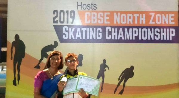 Rudra Pratap Singh, a student of Grade VI of Samsara -The World Academy, whirled the magic on wheels in CBSE North Zone -1 skating Championship, held at Greno International Bank track.