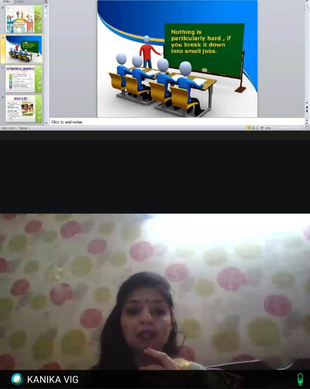 Our Chemistry facilitator Ms. Chhavi Sharma attended a CBSE workshop on "Experiential learning in Practice' organized by COE, Noida on 2nd June 2021. The resource person Ms. Kanika Vig highlighted the meaning of Experiential Learning,the stages of its cycle and possible methods & keys to be used in Experiential Learning. She presented few interesting examples which are worthful in the present scenario.