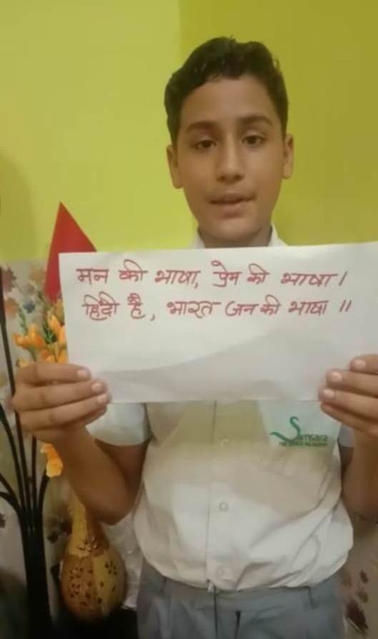 To mark this occasion our school celebrated Hindi Diwas with full zeal and enthusiasm. Students from various classes showed their love and pride towards their 'Matra Bhasha' by presenting their thoughts, poems & slogans virtually and added excitement to stir up the mundane routine in these Covid times.