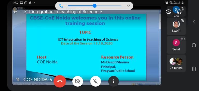 Our Science Facilitators Ms. Seema Singh and Ms. Sarita Saklani attended an online training session on "ICT- Integration in Teaching of Science”. The session was organised by CBSE, CoE, Noida on 13th, October, 2020.