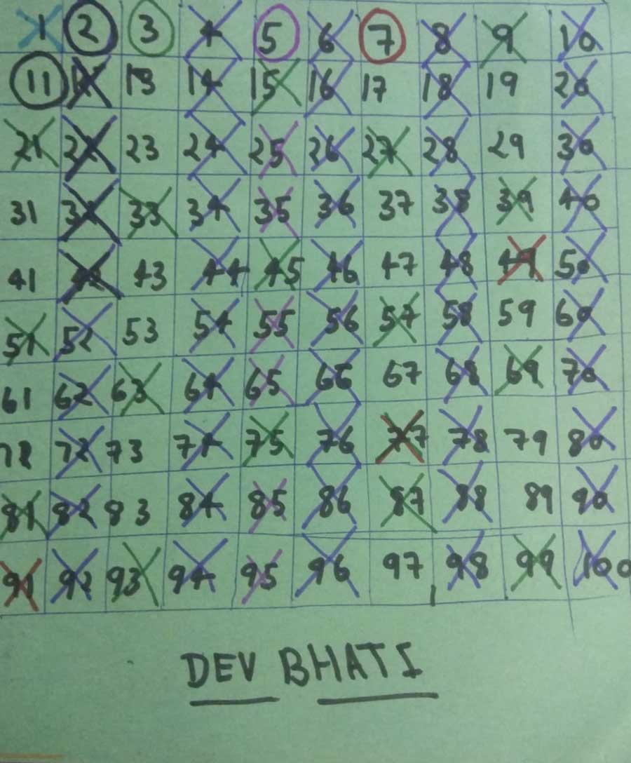 Our Maths teachers taught students of class V, in a fun way, to find and have a record of prime and composite numbers through a very engaging activity called Sieve of Eratosthenes. It is a simple and ancient algorithm used to find the prime numbers up to any given limit. It is one of the most efficient ways to find small prime numbers.