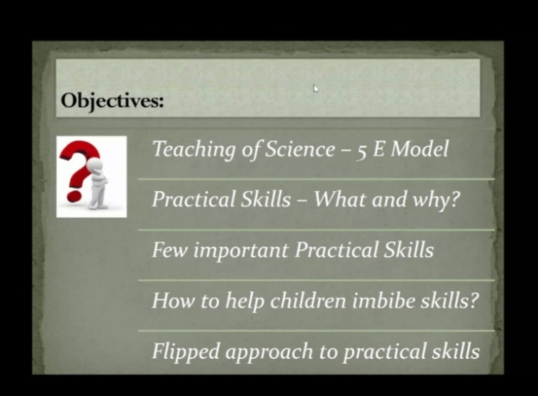 She gave various examples to plan activities and experiments as to make the classroom learning -teaching enjoyable for both the students and teachers. She even instructed that while conducting the experiments we should also teach the students to handle the equipments carefully as well as due care must be taken for the safety of the students.