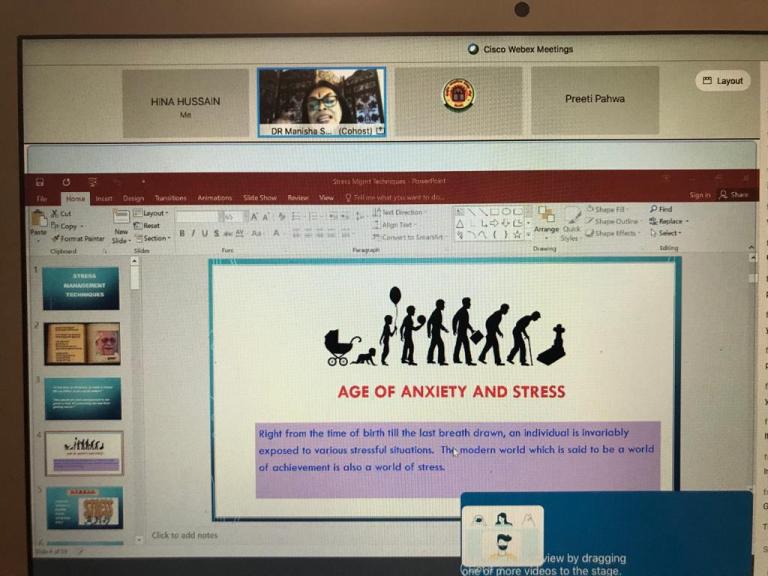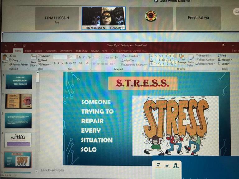 To help the teachers to learn to cope with the stress which they face in classrooms or at personal fronts, an online workshop was organised by CBSE, Centre of Excellence on 24th May 2021. The workshop was attended by our English facilitator, Ms. Hina Hussain. The title of the workshop was ‘Stress Management Techniques’ and the resource person was Dr. Manisha Sharma, Principal, Venkateswar International School, Dwarka. She explained to the participants the basic principles of stress management. She also highlighted how to recognize your stress triggers and how to manage them. Participants were also given tips to develop proactive responses to stressful situations. They were suggested to learn to manage stress through diet, sleep and other lifestyle factors. Overall the session was very helpful for all in developing a long term action plan to minimize and better manage stress.