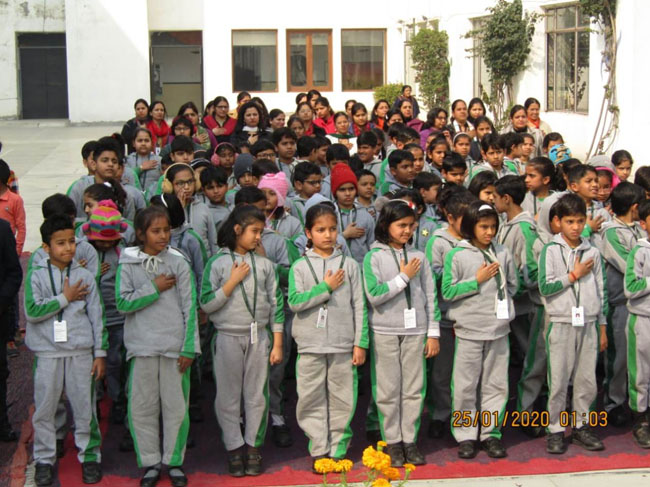 The 71st Republic Day was celebrated on 25th Jan 2020. Students from classes 3rd to 5th participated in the celebration. Our little stars sang many patriotic songs, poems and staged a dance performance. Children from Robinhood Army were also welcomed .They actively participated in the games and thoroughly enjoyed in it. The special assembly got a befitting closure by the encouraging words from our Principal Captain Praveen Roy. An oath was taken by the staff, students and teacher's for Beti Bachao, Beti Padhao campaign for the cause of girl education and empowerment.. |