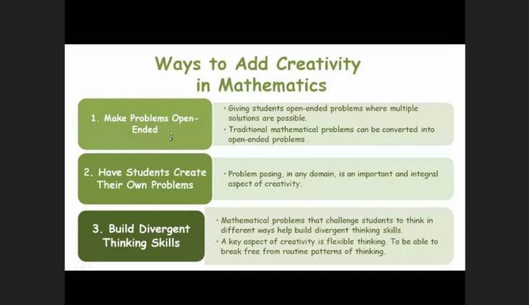 Ms. Ishita Mukherjee took the session and explained the difference between critical and creative thinking. She told various ways to add creativity in Mathematics among students by using various techniques like: making problems open -ended, students creating problems/ sums on their own, and building divergent thinking skills.