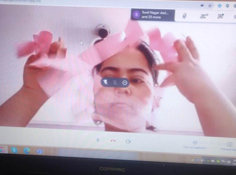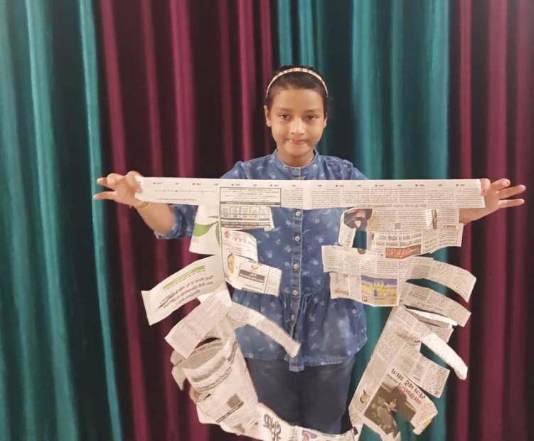 She used A4 sheet to teach the concept of Area and Perimeter. Students were asked to convert the Area of sheet to Perimeter by cutting a paper so that the whole paper is converted into Perimeter to get the long curated streamer.