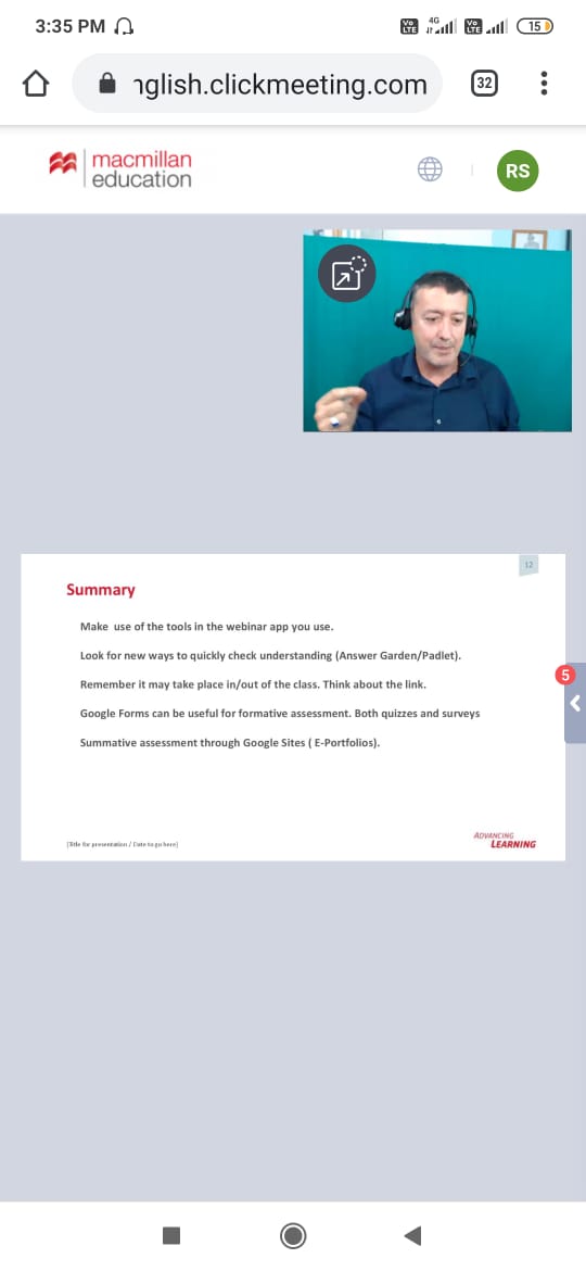 He also gave some practical examples to assess students when teaching online and to make use of the different tools like Google Forms,Ped let, Answer Garden etc.
