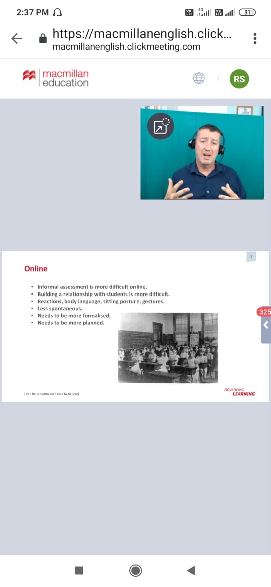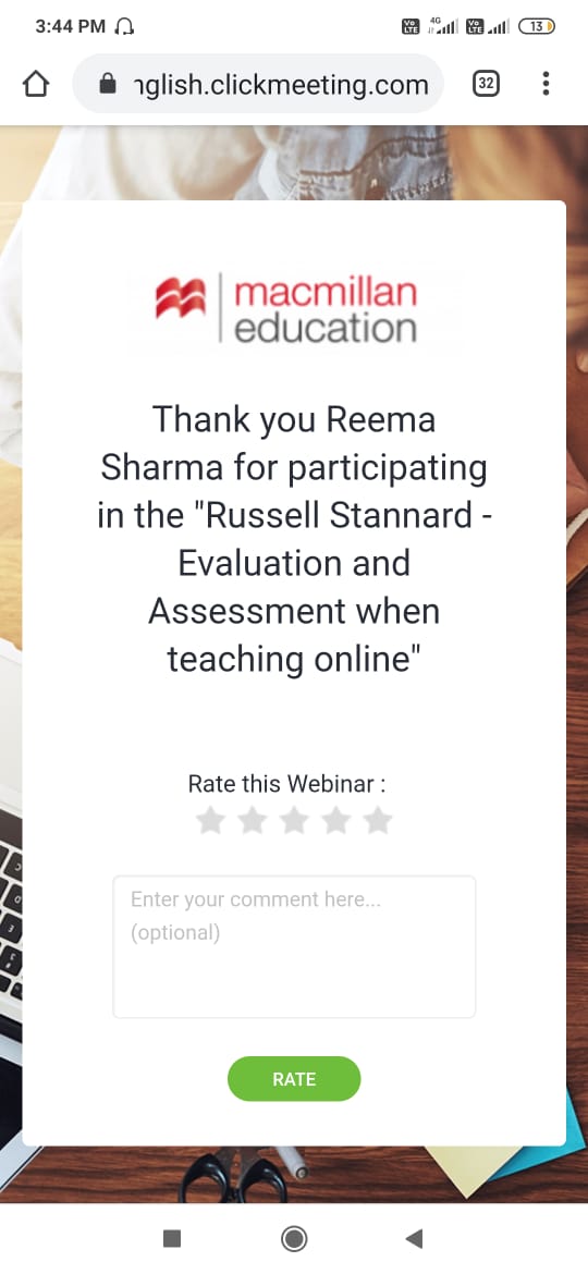 Our English Facilitator Ms. Reema Sharma got an opportunity to attend a lively webinar on the topic "Evaluation and Assessment when teaching Online" on 27th May 2020 organised by Macmillan Education.
